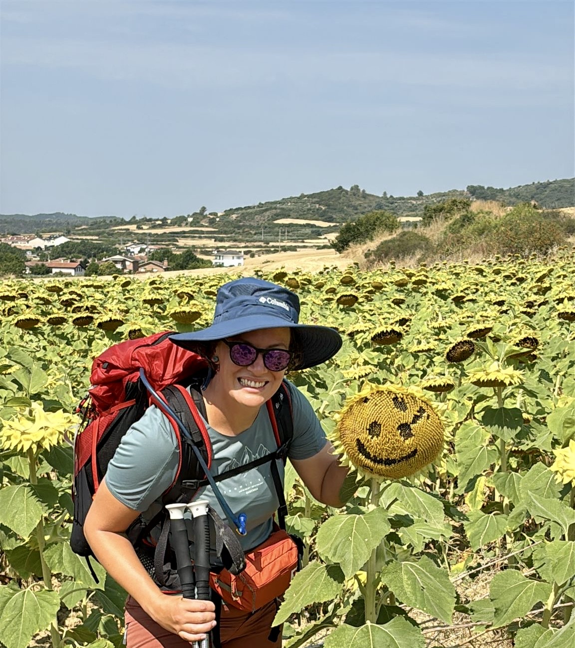Bár semmit nem aludtam, elég energikus voltam. Ez kb. a túra feléig tartott ki, ami 22 km volt. Ismét a holland nővel mentünk, és a következő faluban reggeliztünk. Még sötét volt, amikor elindultunk. A nap csak 8 körül jön fel, és onnantól kezdve már izzadsz is. Csak felfelé és felfelé. Aztán valamennyire sík, de egyre melegebbek a napok – délután 1 körül szerintem elértük a 40 fokot. 3 körül érkeztünk meg. Egy ponton már csak le akartam feküdni az út szélére és meghalni. A táj is teljesen unalmas volt. Végig azon gondolkodtam, mekkora idióta vagyok, hogy ezt önként csinálom, de aztán megérkezel, leveheted a rohadt cipőt, és lezuhanyozhatsz – ezt az érzést szavakkal nem lehet leírni. Sikerült egy jó hostelt találni: kis kabinokkal, függönnyel és LÉGKONDIVAL (!!!). Ez volt a legjobb éjszakám! A város neve Estella, és volt egy természetes „úszómedencéje” is – egy hideg folyó, ami szuper volt. Mostanra egy kis csapat is formálódott, együtt vacsoráztunk – még este 8-kor is 35 fok volt.