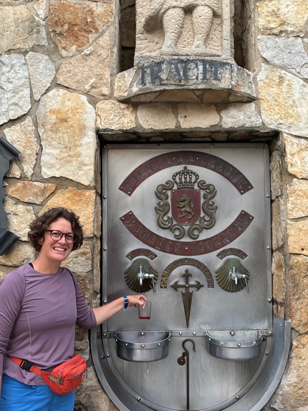 Nem akartam elhagyni a drága kabinomat, de valami mégis azt súgta, hogy menjek tovább. Ma egy kicsit „csaltam”, mert előreküldtem a táskámat a következő faluba taxival. Részben azért, mert még mindig brutálmeleg van, másrészt pedig elkezdett fájni a csípőm. Így se volt könnyű. 6:15-kor indultam, szinte mindenki már elment, kivéve a francia barátnőt az első napról – vele nem tudunk sokat beszélgetni, de nagyon kedves, így együtt mentünk tovább. Útközben megtaláltuk a híres bortöltő kutat, ami sajnos csak munkaidőben működik, de azért pár cseppet sikerült kinyerni (ingyenes!). Elképesztő! Aztán csatlakozott hozzánk egy mexikói srác is, de egy ponton elvesztettem a francia lányt, mert bement az erdőbe napfelkeltét fotózni, aztán egyszerűen eltűnt… Remélem, jól van. Én megálltam reggelizni, és újra utolért a holland nő, aki megvárt. Ma tényleg nem volt árnyék, de legalább a nap felében felhős volt az ég. A csípőm még a táska nélkül is fájt (hála az ibuprofennek). Elhaladtunk Los Arcos mellett, ahol ma este bikafuttatás lesz (nem tudtam róla, sajnos kimarad), és próbáltuk legyűrni az utolsó 7 km-t Torres del Río-ig. Ezen a szakaszon kb. 7 fát számoltam (semmi árnyék, még mindig 40 fok, a vizem hőmérséklete olyan, mint a vizeleté). De jutalmul a hostelnek van medencéje! És holnap csak 20 km van hátra (megint csomaggal :( ).