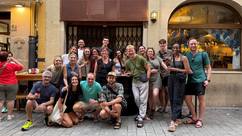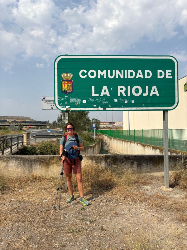 Újra találkoztunk a chilei sráccal és az amerikai lánnyal (plusz a holland hölggyel), sötétben indultunk el Torres del Rióból. Az éjszaka borzasztó meleg volt, csak feküdtem az ágyban és már akkor is izzadtam. A mai szakasz gyönyörű dombokon keresztül vezetett, és rengeteg szederrel találkoztunk. Kialakult egy szokásom: mostanra a reggelim részévé váltak útközben. Talán ez az égiek ajándéka a zarándokoknak. Néha ez az egyetlen motivációm. Egy hét után végre kimostam a cipőmet, de a nap végére pont olyan koszos lett, mint előtte. Az első falu 10 km-re volt, így azok, akik nem gondoskodtak korai reggeliről, elég rossz hangulatban voltak (én sosem indulok el reggeli nélkül). Itt megálltunk egy brunchra, aztán továbbmentünk Logroñóba, ami nem volt túl látványos – talán azért, mert vasárnap volt és minden zárva. A szállón a bejelentkezésre is várnunk kellett, mert túl korán érkeztünk. Ismét voltak ágyak függönnyel, de a szobák jóval kisebbek voltak. És ezzel most beléptem a híres Rioja borvidékre. Logroño híres a pinchosairól, ami a baszk tapas változat – ezt ettük vacsorára. A csoportunk folyamatosan bővül, már kezd kissé sok lenni, úgyhogy valószínűleg egy ideig újra egyedül megyek tovább. Ez volt a hőhullám utolsó napja is!