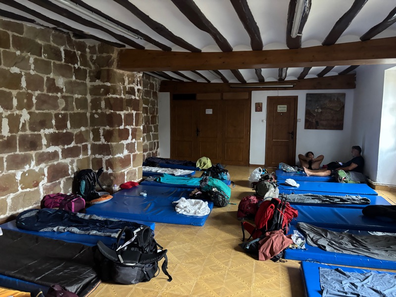 Miután megnéztem őket, továbbmentem Grañónba, így összesen ismét kb. 28 km-t gyalogoltam. A szállás tényleg a templom része, önkéntesek üzemeltetik, és adományért cserébe lehet ott aludni. Közösen főztünk vacsorát, abból a pénzből, amit az előző este ott hagytak a zarándokok. Volt mise is, külön áldással a zarándokokra. Vacsora után meditáció/ima volt a templomban, ahol egy gyertyát adtunk körbe, és mindenki mondhatott egy áldást vagy valamit, amit szeretett volna. Nagyon szép este volt, de későn ért véget, kb. 11-kor. A földön matracokon aludtunk, nagyon szorosan egymás mellett, kb. 20-an egy szobában. Természetesen voltak, akik elefánt módjára horkoltak, szóval lehetetlen volt aludni. Reggel, miután elmentek, kicsit még tudtam aludni, így 06:30-kor keltem, utolsók között.