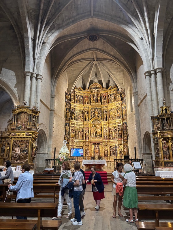 Ma két holland hölggyel indultam, de olyan gyorsak voltak, hogy egy idő után nem tudtam tartani a tempót, és a csípőm is még mindig fáj. (A nagy hátizsák visszatért az előző nap óta…) A csípő nem hazudik… Útközben találkoztam egy kis mókussal, aki nagyon kíváncsi volt, és egészen közel jött. Sajnos nem volt nálam dió. A táj gyönyörű volt: először egy tó, aztán végtelen szőlőültetvények (Rioja bor!). A mai táv 29 km volt, ami elég keménynek bizonyult, bár csak 25 fok volt, felhős égbolt és állandó szél. Először utolértem a hollandokat, aztán egy kanadai hölggyel mentem, végül pedig egy ausztrál férfival gyalogoltam végig Nájera városáig. Itt először engedtem meg magamnak a luxust: egy privát szobát! Leírhatatlan érzés volt. Itt van egy kolostor is, ahol a legenda szerint Szűz Mária megjelent. A templom csodálatos!