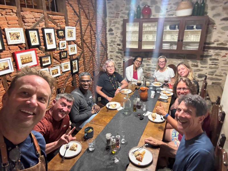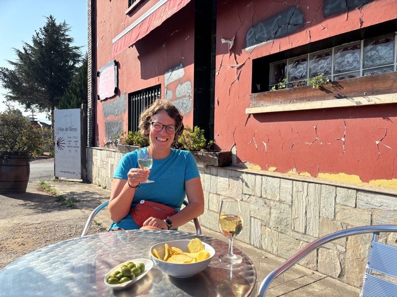 Not a great sleep. The metal framed bunk beds were moving like a ship on the sea with the smallest movement. Still started kind of late around 7:30 and stopped in the first bar for breakfast which was 20 m away. I learned here that you never know when you will find an opportunity to eat, drink or pee so have to use all the opportunities. Was a good idea as for the next 7 km there was nothing. Again walking by the high way but at the next village, Hospital de Orbigo which is by the way beautiful, it was possible to choose an alternative route altough 1,5 km longer which doesn’t go by the road. It was a good idea. Very nice landscape and small villages. 6 km away from the goal, Astorga, there was a kind of food fest where some nice people had a lot of different food and you could donate for it. So I reached Astorga, today alone. Inwanted to sleep in the albergue if the franciscan brothers but unfortunately they ate on holiday on tuesdays. So I ended up in a private one, called My way which is amazing with a garden and pool and also that we are 6 people in a 20 persons dormitory (probably because there was a mistake on booking.com). Even here I visited the cathedral which even had a VR tour. As we are getting closer to Santiago so goes the entrance fees of the cathedrals up.. Gaudí has a building here too which I also visited. Although both buildings are most interesting from the outside. After that dinner with the dutch ladies and Pablo the chilean and now I am back to my (almost) private albergue.